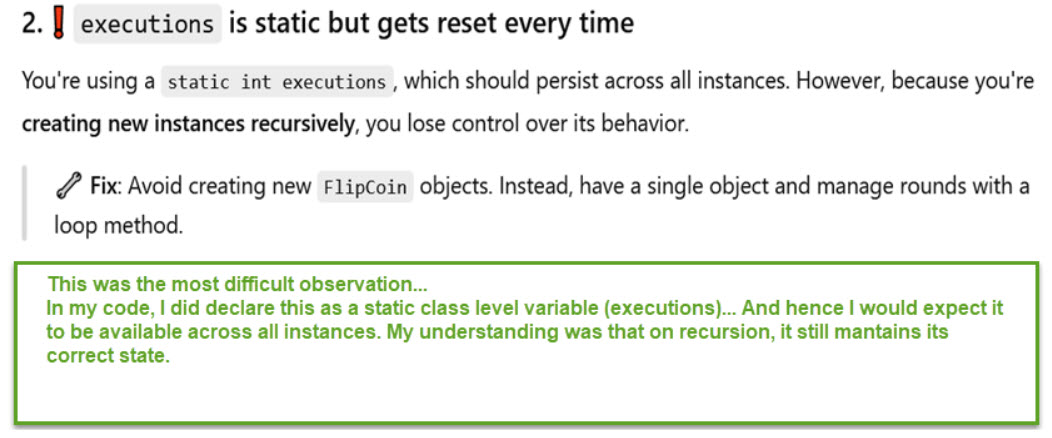 I will try to undertake furter daily coding challenges I receive, although I feel there are several built in methods in Java for instance to crack problems more readily.