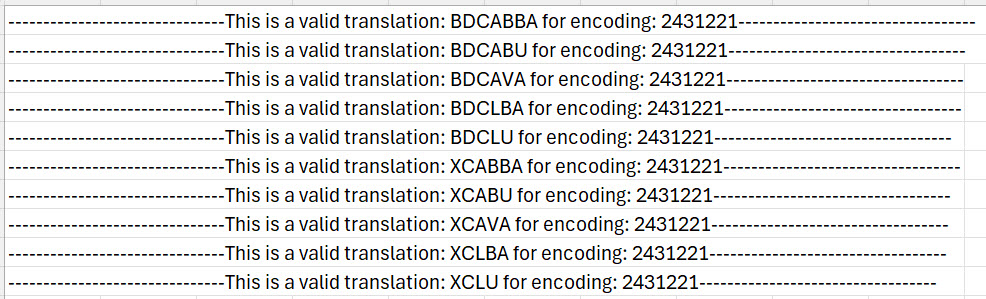 Output of the challenge - performs binary conversions and Bitwise AND of all the conversions.