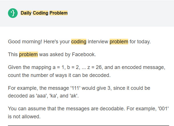 I have just seen a Daily Coding problem received today: